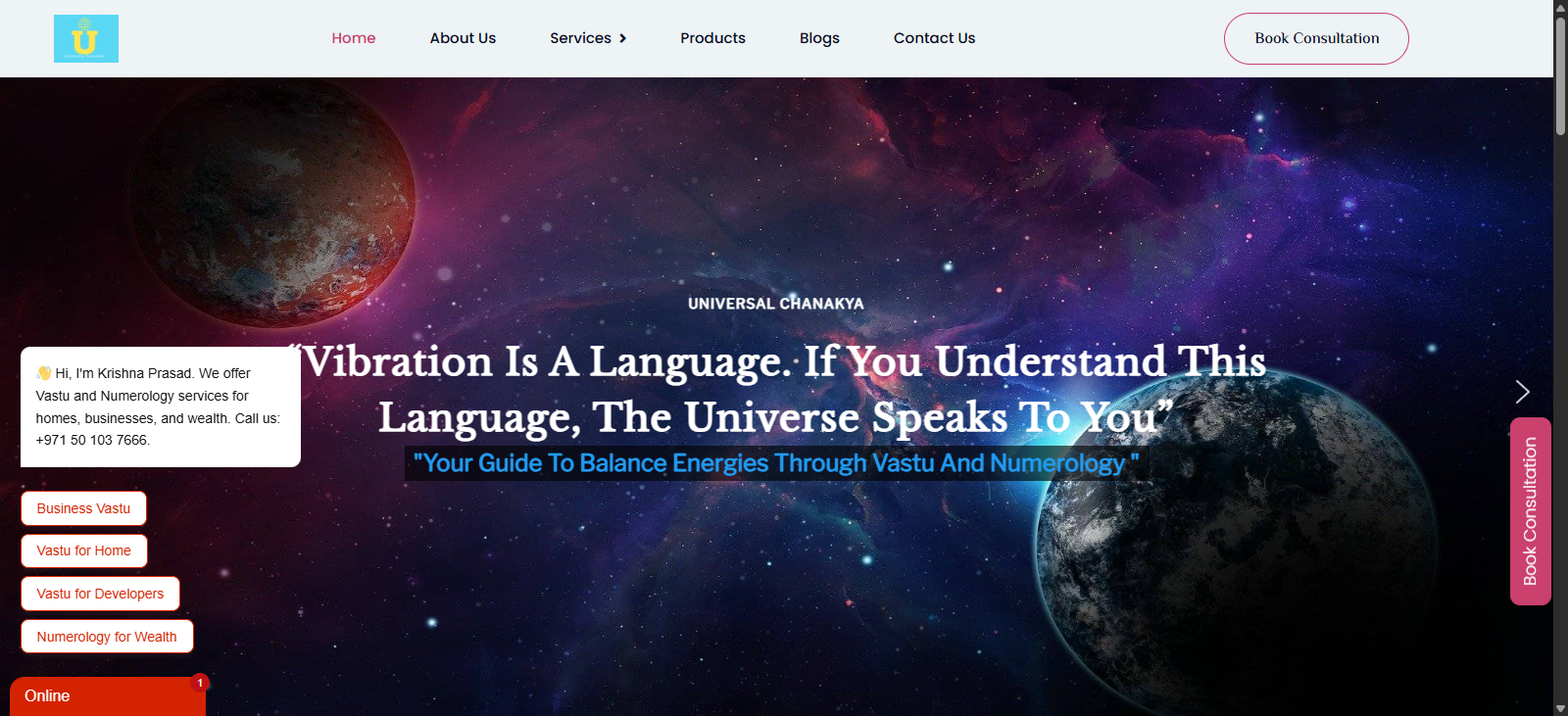Universal Chanakya is a premier Vastu and Numerology consultancy based in Dubai, offering holistic solutions for residential, commercial, and personal well-being. With over 15 years of experience.