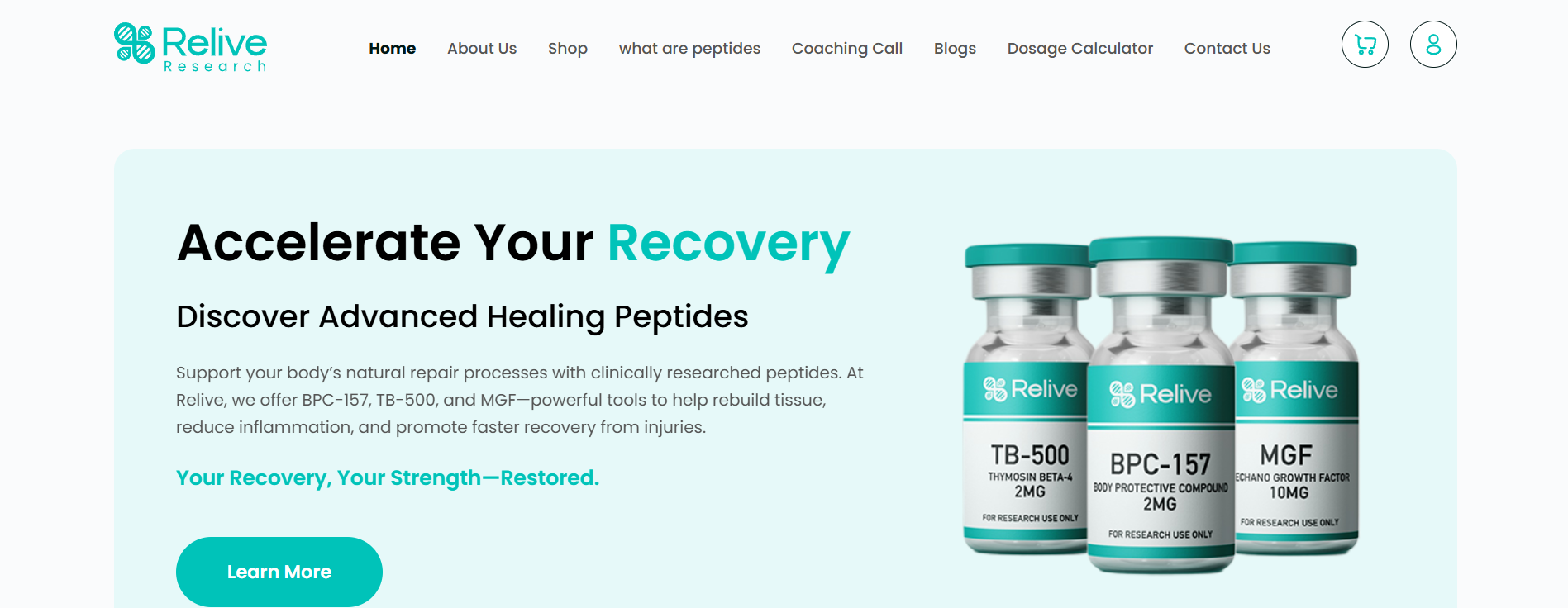 Relive Peptide Research is a premium anti-aging clinic offering advanced, science-based therapies to support longevity and overall wellness. I developed a clean, responsive website to showcase their peptide therapies