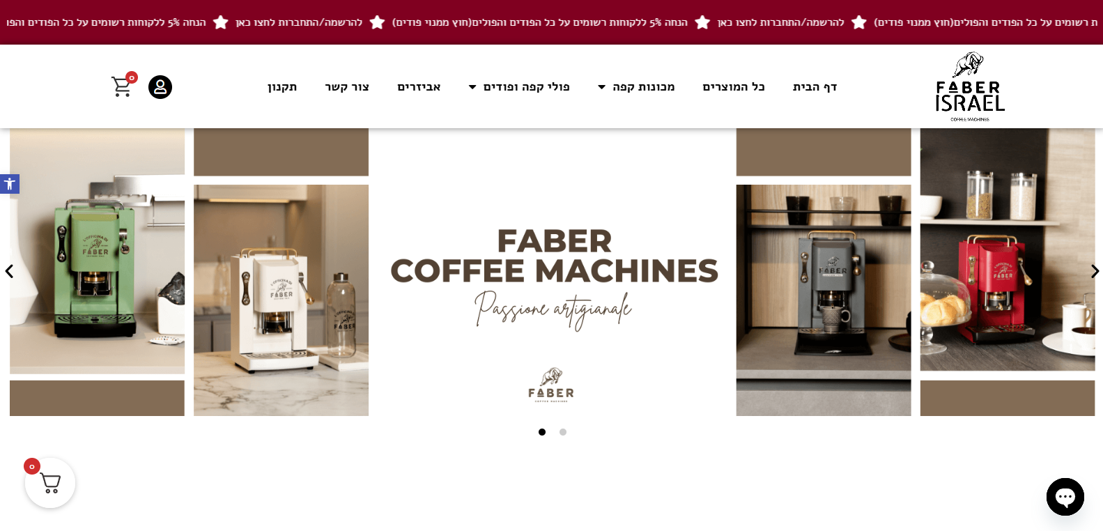 Faber Israel is a premium eCommerce platform specializing in Italian coffee machines and high-quality coffee pods. The website showcases a wide range of stylish, barista-level machines designed for home use with precision and ease.