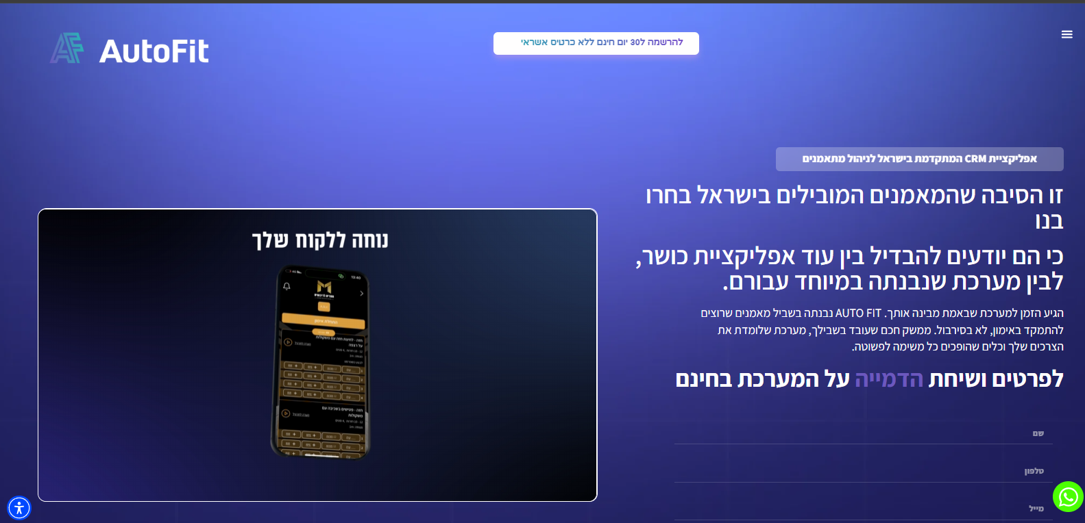 Auto-Fit is a high-converting fitness landing page designed to promote personalized training and nutrition programs. The page focuses on lead generation with a clear call-to-action, transformation highlights, and structured coaching offers.