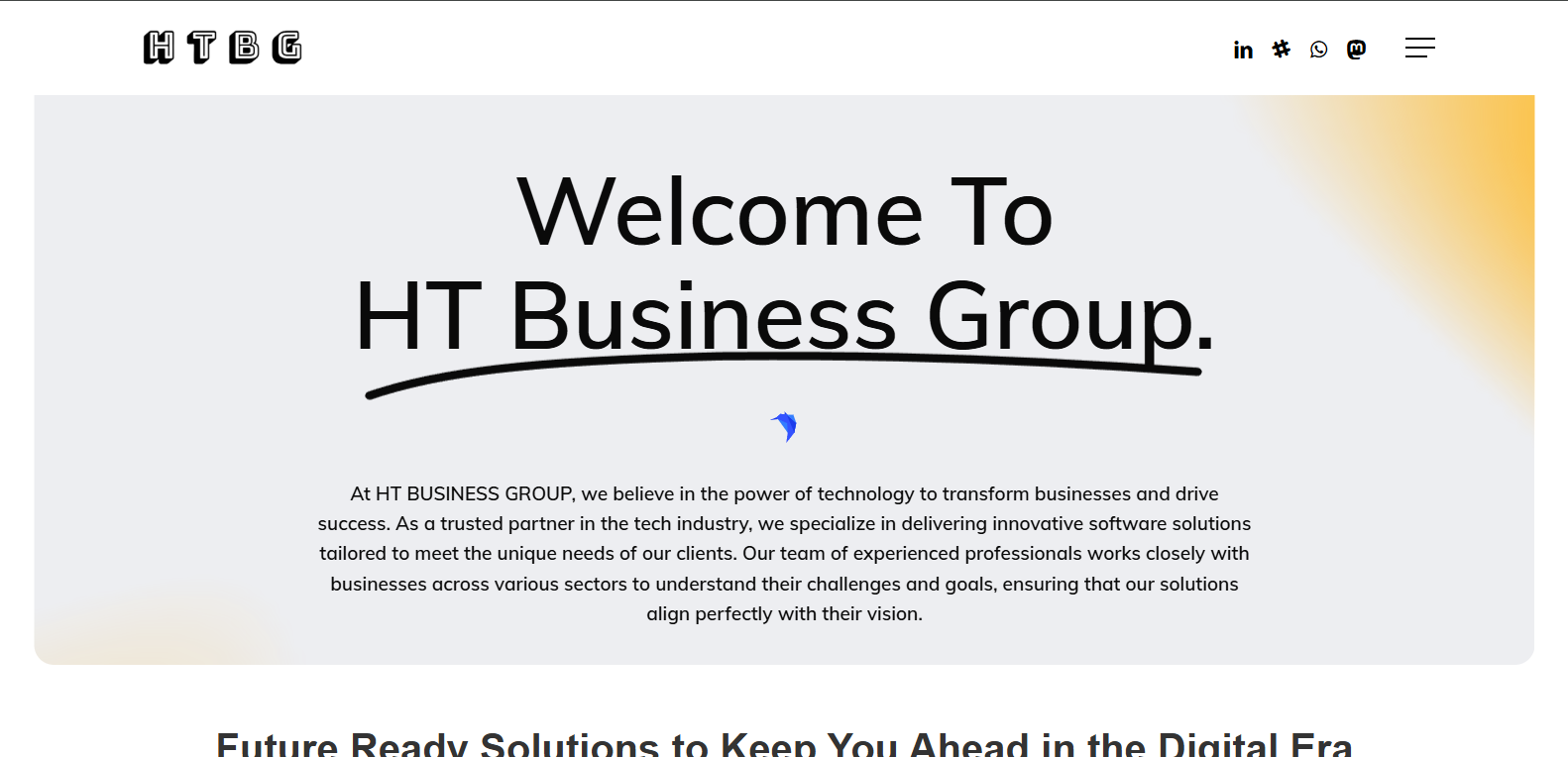 HT Business Group is a global digital solutions company specializing in web development, SaaS platforms, and cloud-based applications. The website highlights expertise in WordPress, Shopify, custom CMS, and scalable software solutions tailored for businesses of all sizes.