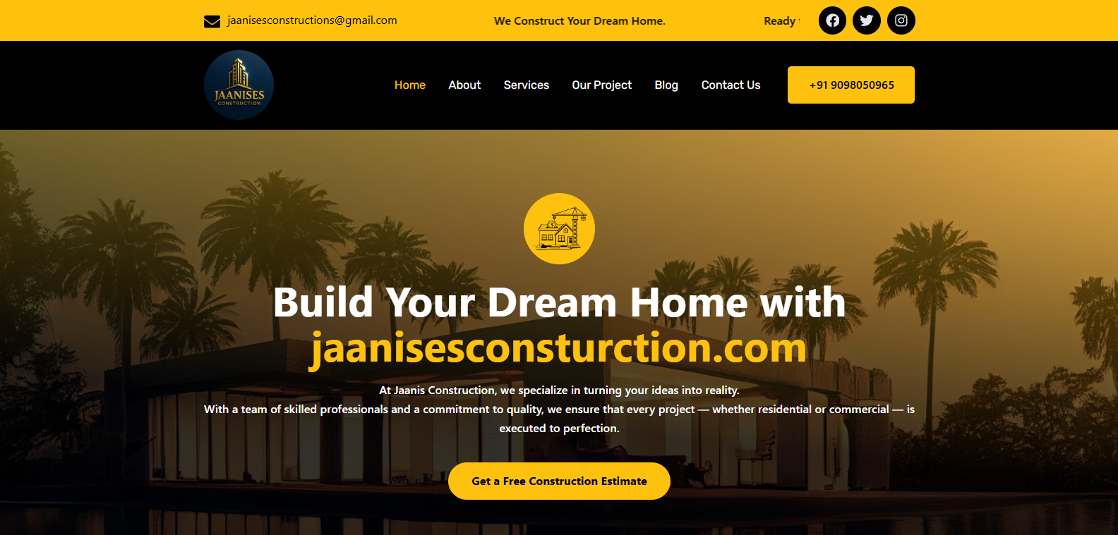 Jaanises Construction is a modern construction and infrastructure platform focused on delivering high-quality residential and commercial projects. The website highlights expertise in planning, design, and execution with a strong emphasis on durability and efficiency.