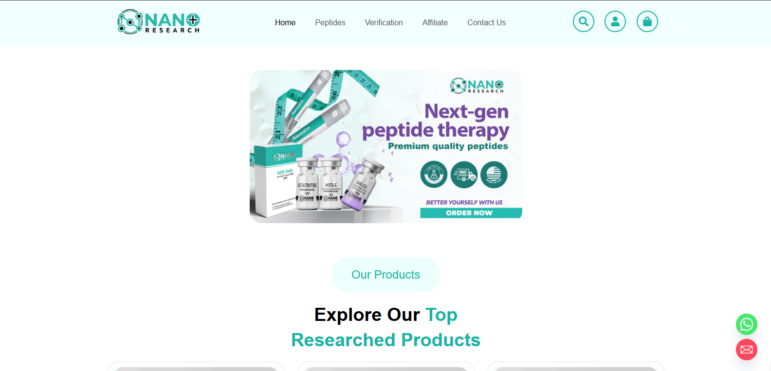 Nano Peptide Research is a specialized eCommerce platform offering high-purity peptides strictly for scientific and laboratory research purposes. The website showcases a wide range of research compounds with detailed product information, quality assurance, and documentation.